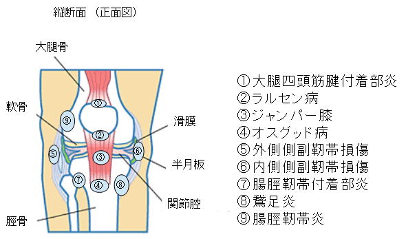 膝のスポーツ障害とはスポーツで膝に負担が繰り返しかかることで、